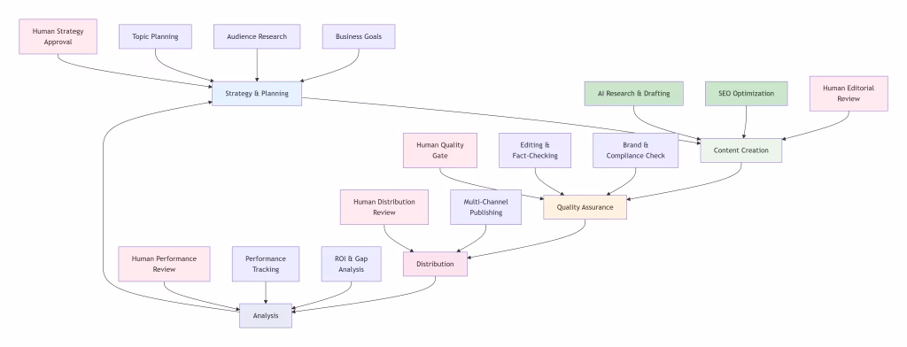 At Kamrun Analytics, our RaiyanBOT AI system automates the entire content lifecycle—guided by a built-in human-in-the-loop workflow to ensure accuracy, quality, and trust. Our AI plans each step, researches topics, develops structured content, and refines tone and style using the same multi-agent logic we apply in our enterprise chatbots and automation projects. Human review is applied at key decision points to maintain brand standards and strategic alignment.